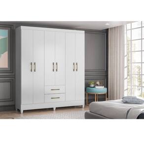 O Guarda Roupa Roupeiro Panamá Moval Móveis é tudo que você precisa para deixar seu quarto ainda mais bonito e aconchegante! comprimento, 6 portas de abrir, 2 gavetas, 5 prateleiras, 2 cabideiros, puxadores em PVC e pés de 8cm também em PVC. Além disso, é produzido em material MDP e conta com lindos acabamentos brilhoso e fosco.