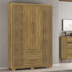 Características: Estrutura em MDP Pintura UV 04 Portas articuladas com dobradiças metálicas 03 Gavetas com corrediças metálicas Cabideiro de Alumínio Puxadores de Plástico Adara Acompanha pés.