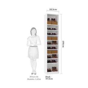 O Guarda Roupa Modulado Sapateira Prime foi desenvolvido se adequando a vários espaços, de grandes a pequenos. Possui 236 cm de altura oferece divisórias para atender diversas necessidades, profundidade de 56cm. Produzido em MDP de 15mm, dobradiças Slowmotin reforçadas em 35mm, a montagem é inteira por minifix que proporciona um acabamento impecável e fundos embutidos com perfil usinado para melhor acabamento e maior resistência.
