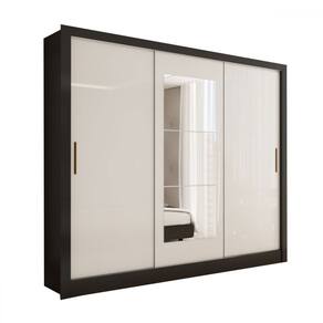 O(a) Guarda-Roupa Sebastian 3 Portas com Espelho 3 Gavetas Preto/Off White - Loja é produzido em MDP na escala de brilho Fosco, e possui um grau de dificuldade de montagem: Médio.