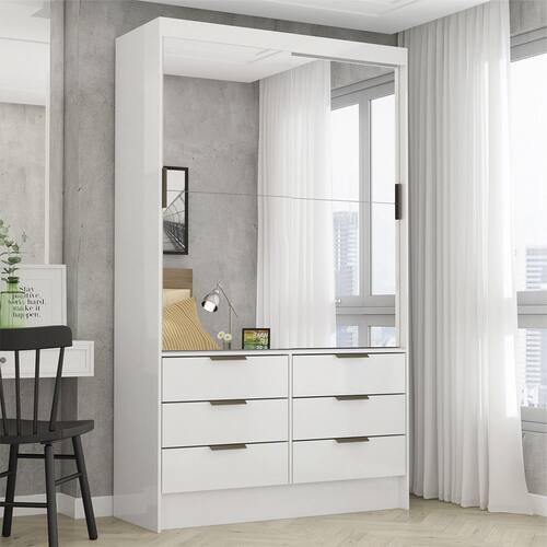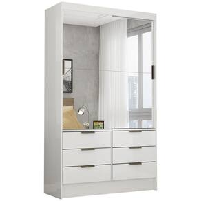 Características Técnicas: Marca: Carioca Móveis Modelo: Sevilha Possui Espelho: Sim Tipo de Porta do Guarda-Roupa: Correr Quantidade de Prateleiras: 1 Prateleiras Possui Prateleiras: Sim Possui Portas: Sim Tipo de Guarda-Roupa: Solteiro Quantidade de Portas: 2 Ambiente Principal: Quarto Escala de Brilho: Brilhante Material da Estrutura: MDP Material do Puxador: Plástico Necessita Montagem: Sim Sistema de Montagem: Parafusos, Cavilhas e Minifix Possui Rodízios: Não Revestimento/Acabamento: Pintura UV Quantidade de Gavetas: 6 Quantidade de Cabideiros: 1 Peso Suportado no Cabideiro -kg-: 4 Material do Calceiro: Não Possui Material do Trilho Inferior: Alumínio Roldanas: Aço Material do Cabideiro: Alumínio Espessura do Espelho -mm-: 3 Material das Dobradiças: Não Possui Material das Corrediças: Metálica Peso Suportado nas Prateleiras -kg-: 4 Peso Suportado nas Gavetas -kg-: 4 Grau de Dificuldade da Montagem: Médio