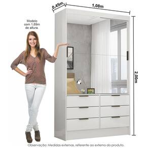 Suas portas são espelhadas que facilitam durante o dia a dia, permitindo dar aquela conferida de corpo inteiro no look antes de sair de casa ou mesmo para acrescentar em sua decoração, deixando o quarto ainda mais bonito e moderno