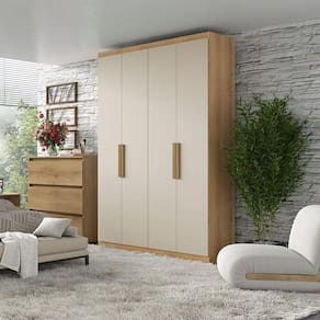 Guarda Roupa Solteiro Milan 4 Portas Capuccino Off White Acetinado - THB