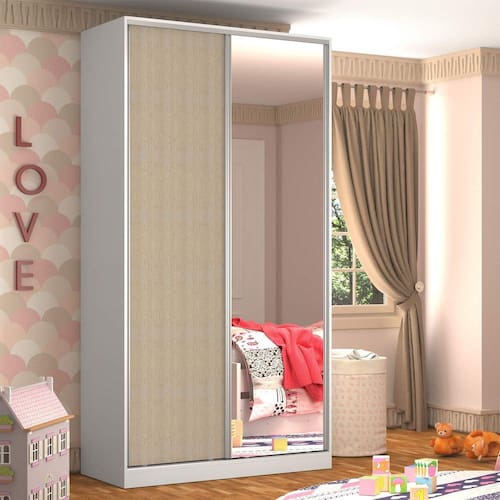 Móveis com design contemporâneo e cores diferenciadas que se harmonizam facilmente com todos os estilos de ambientes. Linha de produtos com alta resistência desenvolvidos 100% em MDF, com o objetivo de atender todas as necessidades do mercado nacional. Acabamento da Prateleira: Pintura Texturizada UV Escala de Brilho da Prateleira: Fosco Possui Cabideiros: Sim Acabamento da Gaveta: Pintura Texturizada UV Escala de Brilho da Gaveta: Fosco Tipo de Corrediça: Metálica Telescópica Possui Organizador de Gaveta: Não Acabamento da Porta: Pintura Texturizada UV Escala de Brilho da Porta: Fosco Material do Puxador da Porta: Alumínio Ambiente Principal: Quarto codigo_ean: 7908167269724 Complexidade da Montagem: Média: pode ser montado por mais de uma pessoa e/ou necessite de maior conhecimento para montagem Cor: Branco e Noce Cor do Produto: Branco e Noce Cor Flex: Não Cor Interna: Branco Escala de Brilho: Fosco Espessura do Espelho: 3 mm Formato do Espelho: Retangular Itens Inclusos: 1 Guarda Roupa e Manual de Montagem. Manual de Montagem e Instalação: https://product-hub-prd.madeiramadeira.com.br/595715/documents/656f8243-bdfb-4090-8479-5722305b0d79200523271emanualdemontagem.pdf Material da Gaveta: MDF Material da Porta: MDF Material da Prateleira: MDF Material Principal: MDF Montagem Flex: Não Necessita Montagem: Sim Peso: 115 kg Peso Máximo por Gaveta: 5 kg Peso Máximo por Prateleira: 5 kg Possui Calceiros: Não Possui Espaço para Vestidos Longos: Não Possui Espelho: Sim Possui Espelho Interno: Não Possui Ganchos: Não Possui iluminação: Não Possui Painel de TV: Não Possui Pés: Não Possui Portas: Sim Possui Prateleiras: Sim Possui Sapateira: Não Produto Montado: Sim Quantidade de Espelho: 01 Quantidade de Gavetas: 03 Gavetas Quantidade de Prateleiras: 06 Prateleiras Recomendações de Uso, Manutenção e Limpeza: Para a limpeza do móvel utilizar uma flanela seca. Sistema de Montagem: Parafusos, cavilhas e minifix. Tipo de Corrediça da Gaveta: Metálica Telescópica Tipo de Dobradiça/Corrediça da Porta: Alumínio Tipo de Fixação do Espelho: Parafusos Tipo de Gaveta: Interna Tipo de Guarda-Roupa: Solteiro Tipo de Puxador da Gaveta: Não Possui Tipo de Puxador da Porta: Embutido