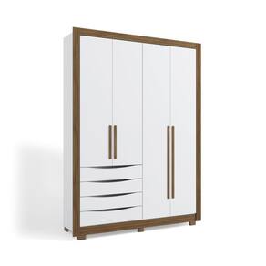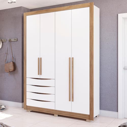 Deixe seu quarto ainda mais lindo, moderno e organizado com a linha de Guarda-Roupas 100% MDF da Loja Oficial Kappesberg. Na cor Branco/Nogueira, com 4 portas e 4 gavetas, sem espelho e pés em Polipropileno, ele tem o tamanho ideal para um quarto de solteiro. Todo produzido com chapas de 15mm, o que garante mais robustez, firmeza e qualidade ao seu Guarda-Roupas. Sua pintura é feita com sete camadas, garantindo mais durabilidade e beleza ao seu móvel. As portas possuem puxadores em madeira e Sistema de Amortecimento, proporcionando um fechamento suave, além do detalhe ripado em sua moldura, deixando seu quarto com ainda mais estilo e modernidade. Você precisa de espaço? Na parte interna, há muito espaço com diversos nichos de tamanhos diferentes, ideal para organizar calçados e roupas dobradas. Nos Cabideiros, que são Metálicos e com suporte interno, garantindo melhor acabamento e durabilidade, é possível guardar as roupas em cabides e até mesmo organizar mantas e acessórios. Suas gavetas possuem Corrediças Telescópicas, garantindo a abertura total, para que você aproveite todo espaço disponívelf eito 100% em MDF, o guarda-roupas M581 é a opção ideal para quem quer renovar seu quarto com a qualidade, modernidade e beleza dos Móveis Kappesberg.