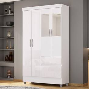 Guarda Roupa Solteiro 103cm Com Espelho Ideal Branco - Vila Rica