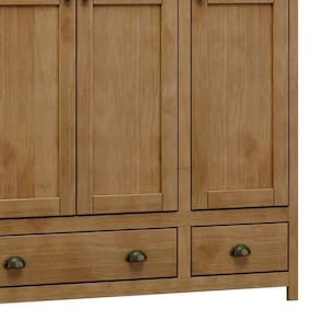 O Roupeiro conta com duas gavetas equipadas com corrediças telescópicas, que garantem deslizamento suave e amplo espaço de armazenamento. As portas contam com dobradiças metálicas com amortecimento e detalhes em madeira maciça que acrescentam um toque refinado ao móvel.