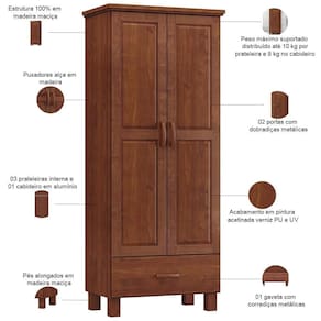 O Guarda Roupa Solteiro Selena, fabricado em 100% madeira maciça, é a resposta sofisticada para quem busca organização sem abrir mão do requinte.