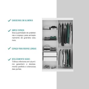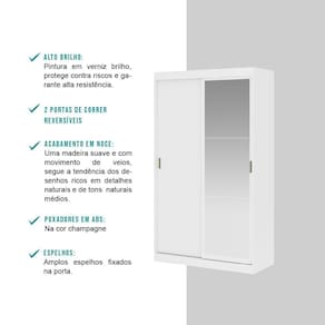 O Guarda-Roupa Nivus Carraro é uma peça ótima para organizar e manter seu ambiente estilo. Conta com portas reversíveis, podendo escolher a melhor forma na hora da montagem, sendo uma delas com espelho. Ele comporta tudo que precisa sema preocupação de falta de espaço. A peça possui grande espeaço decabideiros e gavetas, nichoslateraiscom diversas prateleiras internas, é possível armazenar roupas, acessórios e calçados, deixando tudo à mão e trazendo muita praticidade para o seu dia a dia.