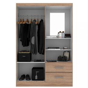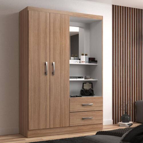 O Guarda Roupa Solteiro 2 Portas 2 Gavetas Capelinha Evidencia, a solução perfeita para quem busca boa distribuição de espaço, composto por 2 portas e 2 gavetas espaçosas, este guarda-roupa oferece praticidade e organização. Possui prateleira interna e externas, além de um cabideiro e um espelho integrado. Seu puxador das gavetas e portas é em plástico, garantindo durabilidade. Com um nicho adicional, é o produto ideal para atender suas necessidades de armazenamento com qualidade.