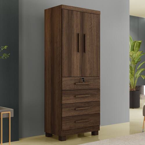 Guarda Roupa Solteiro 2 Portas 4 Gavetas com Pés New Maia Benetil O Guarda-roupa Maia é a escolha perfeita para quem busca charme, elegância e praticidade. Com design moderno, ele possui 2 portas e 4 gavetas espaçosas, além de chave para garantir a sua privacidade. O cabideiro em alumínio oferece excelente espaço para acomodar seus cabides, deixando tudo muito bem organizado.