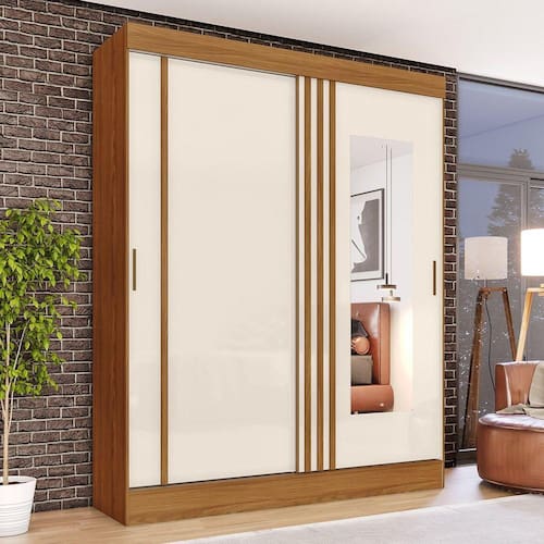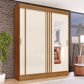 O Roupeiro e um item essencial na decoracao de qualquer quarto, e o modelo Marcel e uma opcao elegante, funcional e pratica que atende as necessidades de quem procura organizacao e beleza em um so movel. Com 2 portas de correr e espelho integrado, o roupeiro Marcel oferece um amplo espaco interno, para guardar roupas, calcados e acessorios com muito mais praticidade. Com duas gavetas espacosas e puxadores em aluminio, este roupeiro oferece ainda mais praticidade e requinte em sua utilizacao diaria. O modelo Marcel e perfeito para quem busca um movel versatil e adaptavel as suas necessidades.