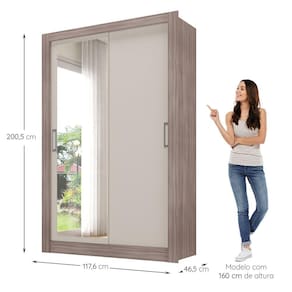 Guarda-roupa de duas portas correr, confeccionado em MDP com um elegante acabamento em Finish Foil. Equipado com trilhos plásticos para uma operação suave, o guarda-roupa apresenta um cabideiro de madeira de 40 cm de alta qualidade, ideal para pendurar suas roupas sem amassá-las. Além disso, oferece um generoso espaço de armazenamento interno, sendo perfeito para quem busca praticidade e organização em seu ambiente residencial. Acabamento da Prateleira: Finish Foil Escala de Brilho da Prateleira: Fosco Possui Cabideiros: Sim Acabamento da Porta: Finish Foil Escala de Brilho da Porta: Fosco Material do Puxador da Porta: ABS Altura do Espelho 01: 576 cm Altura do Espelho 02: 576 cm Altura do Espelho 03: 576 cm Ambiente Principal: Quarto codigo_ean: 7909903509265 Complexidade da Montagem: Média: pode ser montado por mais de uma pessoa e/ou necessite de maior conhecimento para montagem Cor: Castanho/OffWhite Cor do Produto: Castanho/OffWhite Cor Interna: Castanho/Branco Escala de Brilho: Fosco Espessura do Espelho: 3 mm Fita Integrada: Sim Formato do Espelho: Retangular Guarda-Roupa Suporta Até (kg): 30 kg Itens Inclusos: 1 Guarda-Roupa, Kit Ferragens e Manual de Montagem Largura do Espelho 01: 450 cm Largura do Espelho 02: 450 cm Largura do Espelho 03: 450 cm Linha ou Coleção: Yescasa Manual de Montagem e Instalação: https://product-hub-prd.madeiramadeira.com.br/882959/documents/34702bf4-80a9-4d8c-a141-459cfdbde2b6432manualdemontagemgr200mm.pdf Material da Porta: MDP Material da Prateleira: MDP Material Principal: MDP modular: Não Montagem Flex: Não Necessita Montagem: Sim Origem do Produto: Nacional Peso: 58 kg Peso Máximo por Prateleira: 7 kg Possui Calceiros: Não Possui Espaço para Vestidos Longos: Sim Possui Espelho: Sim Possui Ganchos: Não Possui iluminação: Não Possui Nichos: Não Possui Pés: Não Possui Portas: Sim Possui Prateleiras: Sim Possui Sapateira: Não Produto Montado: Sim Quantidade de Espelho: 03 Espelhos com Tamanhos Diferentes Quantidade de Prateleiras: 02 Prateleiras Recomendações de Uso, Manutenção e Limpeza: Usar pano levemente umedecido seguido de pano seco. Sistema de Montagem: Parafusos e Cavilhas Suporta Até (kg): 50 kg Tipo de Dobradiça/Corrediça da Porta: Plástica Tipo de Fixação do Espelho: Fita Dupla Face Tipo de Guarda-Roupa: Solteiro Tipo de Puxador da Porta: Embutido