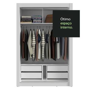 Espaço e organização: Perfeito para quarto de solteiro, o modelo conta com diversos nichos internos e quatro gavetas, que facilitam a organização de roupas, calçados e acessórios. O tubo cabideiro metálico é ideal para pendurar roupas longas.