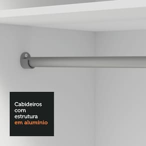 Espaço e organização: Perfeito para quarto de solteiro, conta com diversos nichos internos que facilitam a organização de roupas, calçados e acessórios. O tubo cabideiro metálico é ideal para pendurar roupas longas.