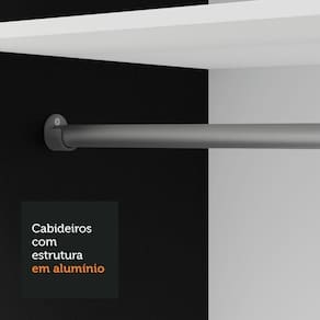 Espaço e organização: Perfeito para quarto de solteiro, conta com diversos nichos internos que facilitam a organização de roupas, calçados e acessórios. O tubo cabideiro metálico é ideal para pendurar roupas longas.
