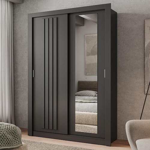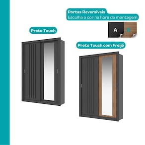 Equipado com 2 portas de correr, sendo 1 delas com espelho, e 2 gavetas, oferece um acesso fácil e eficiente, maximizando o aproveitamento do espaço.