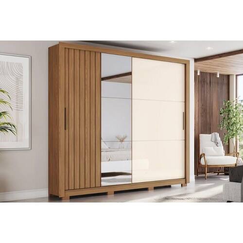 Guarda Roupa Solteiro 2 Portas de Correr (1 c/ Espelho) e 4 Gavetas c/ Pés Vasti Nature/Off White - Henn Marca: Henn