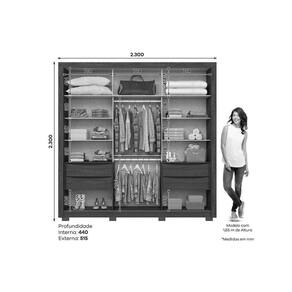 Material de Estrutura - MDF/MDP Espessura Material da Estrutura (mm) - Espessura 15mm Estilo do Móvel - Moderno Tipo de Pintura - Ultravioleta - Texturizada Tipo de Acabamento da Pintura - Pintura Fosca Diferenciais Guarda Roupas - Calceiro