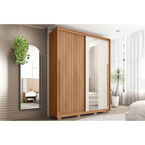 Tipo de Cabideiro - Aéreo Material dos Cabideiros - Cabideira Metálico Tipo de Porta do Guarda-Roupa - Portas de Correr Material das Portas - Portas em MDF Diferenciais das Portas - Portas Ripadas Quantidade de Portas - 2 Portas de Correr Quantidade de Portas com Espelho - 1 Porta com Espelho Tipo de Espelho - Espelho Externo Quantidade de Espelhos - 1 Espelho Material das Gavetas - Gavetas em MDF - Gavetas em MDP Tipo de Corrediça - c/ Corrediças Telescópicas Quantidade de Gavetas - 3 Material de Estrutura Fundo Gaveta - Em HDF Tipo dos Pés - ABS/PVC Quantidade de Pés - 8 pés Material das Prateleiras - Prateleiras em MDF - Prateleiras em MDP Quantidade de Prateleiras - 3 Quantidade de Nichos - 8 nichos