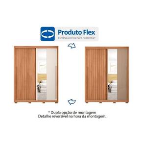 Guarda Roupa Solteiro 2 Portas de Correr (1 Ripada e 1 c/ Espelho) e 3 Gavetas Moviment 1.8 Lux Flex Freijo/Off White ou Sued - Caemmun