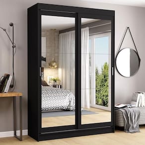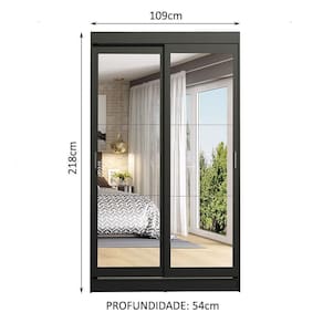 Os materiais utilizados são de alta qualidade, com duas portas de correr com deslizamento suave e puxadores em alumínio, dobradiças metálicas e trilho superior e inferior em alumínio. Ambas as portas possuem espelhos, que além de trazerem beleza, também transmitem a sensação de um ambiente mais amplo.