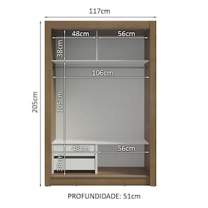 Medidas totais: 205 cm de altura x 117 cm de largura x 51 cm de profundidade.