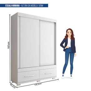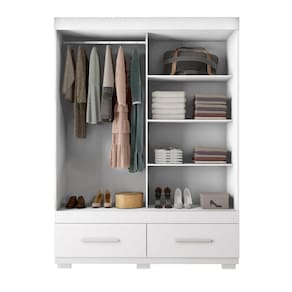O Roupeiro Sereno da Caemmun é a escolha perfeita para quem busca um móvel prático, durável e com design moderno. Com 1.36cm de largura, ele se adapta perfeitamente a diversos ambientes. Produzido em MDP de alta qualidade com acabamento FF, o Roupeiro Sereno oferece resistência e durabilidade. Com duas portas de correr que deslizam suavemente e duas gavetas que garantirá a organização das roupas, acessórios e objetos pessoais. Escolha a tonalidade que mais combina com seu ambiente e estilo. Acabamento da Prateleira: BP Melamínico Escala de Brilho da Prateleira: Fosco Possui Cabideiros: Sim Acabamento da Gaveta: BP Melamínico Possui Organizador de Gaveta: Não Acabamento da Porta: BP Melamínico Escala de Brilho da Porta: Fosco Altura dos Pés: 5 cm Altura Máxima dos Pés: 5.0000 Ambiente Principal: Quarto codigo_ean: 7909903986646 Complexidade da Montagem: Alta: deve ser montado por um montador especializado Cor: Branco Cor do Produto: Branco Escala de Brilho: Fosco Espessura da Estrutura (mm): 12 mm Espessura das Portas (mm): 12 mm Espessura das Prateleiras (mm): 12 mm Espessura do Fundo (mm): 2,5 mm Espessura do Fundo das Gavetas (mm): 2,5 mm Itens Inclusos: 1 Guarda Roupa, Kit ferragens e Manual de Montagem Linha ou Coleção: Sereno Manual de Montagem e Instalação: https://product-hub-prd.madeiramadeira.com.br/938910/documents/05897266-4f99-49e7-9be7-da4554a5d2c5230611155951725562256997.pdf Marca: Caemmun Material da Gaveta: MDP/HDF Material da Porta: MDP Material da Prateleira: MDP Material dos Pés: PVC Material Principal: MDP modular: Não Montagem Flex: Não Necessita Montagem: Sim Nicho com Cabideiro: Não Origem do Produto: Nacional Peso: 65,85 kg Peso Máximo por Gaveta: 2 kg Peso Máximo por Prateleira: 5 kg Possui Calceiros: Não Possui Espelho: Não Possui Pés: 06 Possui Portas: Sim Possui Prateleiras: Sim Produto Montado: Sim Quantidade de Cabideiros: 01 Cabideiro Quantidade de Gavetas: 02 Gavetas Recomendações de Uso, Manutenção e Limpeza: Limpar com pano macio levemente umedecido e em seguida pano macio seco. Não utilizar produtos abrasivos (lixas, esponjas) e/ou produtos a base de solventes (thinner, aguarrás). Sistema de Montagem: Utiliza-se na montagem do produto sistema de fixação minifix, dobradiças, dispositivos angulares, cavilhas, parafusos, porcas cilindricas, entre outros; Tipo de Corrediça da Gaveta: Metálica Simples Tipo de Dobradiça/Corrediça da Porta: Plástica Tipo de Gaveta: Externa Tipo de Guarda-Roupa: Solteiro Tipo de Puxador da Gaveta: Externo Tipo de Puxador da Porta: Externo