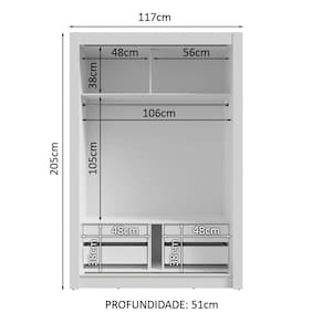 Medidas totais: 205 cm de altura x 117 cm de largura x 51 cm de profundidade.