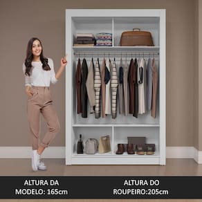 Espaço e organização: Perfeito para quarto de solteiro, conta com diversos nichos internos que facilitam a organização de roupas, calçados e acessórios. O tubo cabideiro metálico é ideal para pendurar roupas longas.