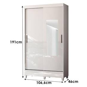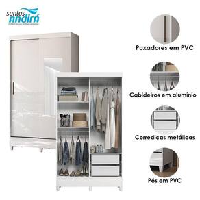 Guarda Roupa Solteiro 2 portas de correr com espelho e pés Fit Branco Brilho - Santos Andirá