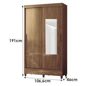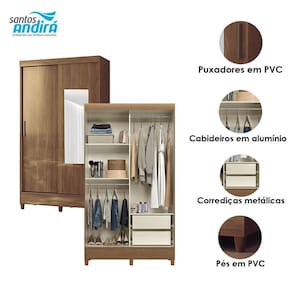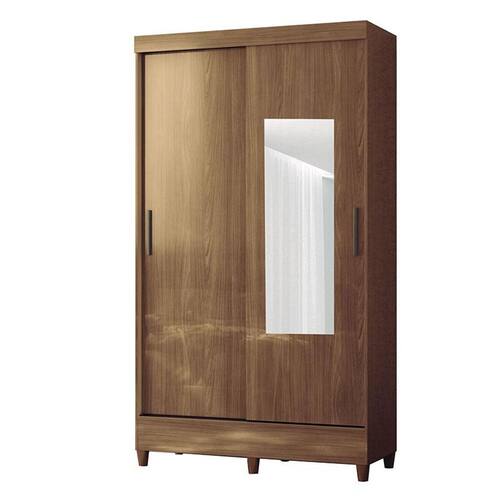 Guarda Roupa Solteiro 2 portas de correr com espelho e pés Fit Jequitibá Acetinado- Santos Andirá
