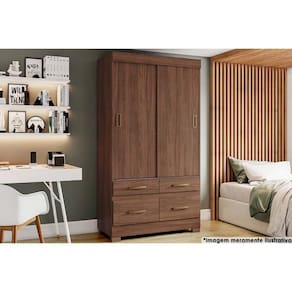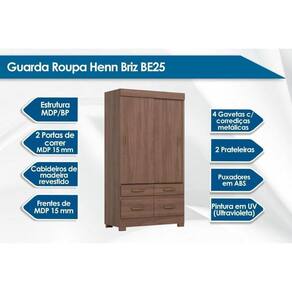 Guarda Roupa Solteiro 2 Portas de Correr e 4 Gavetas c/ Pés Briz BE25 Castanho - Henn Marca: HENN
