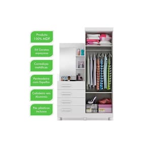 QUARTO CASAL - SOLTEIRO - INFANTIL (BENEFICIOS) Tipo de Estrutura do Móvel - MDF Vantagens Extras dos Guarda Roupas - Desmontável - Cabideira Metálico Tipo de Dobradiças - Dobradiças Metálicas Tipo de Corrediça - c/ Corrediças Metálicas