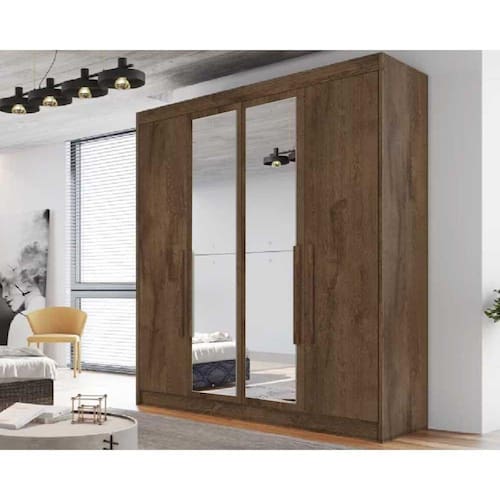 Guarda Roupa Solteiro 3 Gavetas E 4 Portas C/2 Espelho Nantes Braúna - Europa