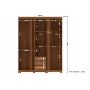 Dimensões(Cm): Comprimento(Profundidade): 46,3cm x Largura: 173,4cm x Altura: 224cm