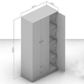 Imagens meramente ilustrativas, produto não acompanha objetos de decoração e eletrônicos; O produto pode sofrer alterações de tonalidade conforme o seu monitor; Produto não deve ficar exposto diretamente ao sol, calor e umidade excessivas; Recomendações de Limpeza: Utilize somente pano seco ou levemente umedecido; Ao receber, verifique a embalagem. Se detectar irregularidade recuse o e nos contate. Não nos responsabilizamos, no ato da , por subir escadas/elevadores, guinchos, içamentos ou quaisquer outros meios específicos de . Nós não nos responsabilizamos pela montagem e por problemas causados pela montagem realizada por você ou montador contratado. Cor: Branco | Quantidade de Gavetas: 2 | Quantidade de Portas: 3 | Tipo de Porta: Bater | Tipo de Gaveta: Corrediça telescópica | Marca: Politorno | Suporta Até (kg): 10kg por prateleira, 3kg por gaveta | Possui Prateleiras: Sim | Possui Portas: Sim | Possui Pés: Não | Possui Nichos: Sim | Possui Gavetas: Sim | Gaveta com Chave: Não | Possui Espelho: Não | Possui Calceiros: Não | Possui Cabideiros: Sim | Quantidade de Espelhos: Não possui | Necessita Montagem: Sim | Material: MDP | Garantia: 3 meses | Acabamento: Finish Foil Fosco | Altura (cm): 180 | Largura (cm): 91 | Profundidade (cm): 45 | Modelo: Gandu | Quantidade de Caixa de embalagem: 1 | Inclui manual de montagem: SIm