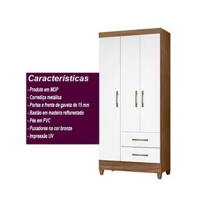 Guarda Roupa Solteiro 3 portas 2 gavetas Lima - Branco