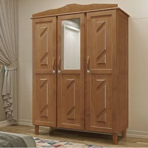 Guarda-Roupa Solteiro 3 Portas 3 Gavetas Internas com Espelho Brasil em Madeira - Cavazotto Imbuia -