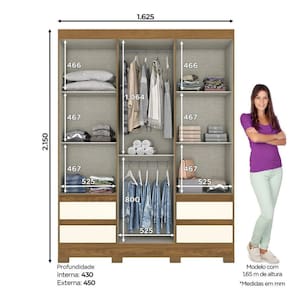 Com tres portas de abertura suave e quatro gavetas espacosas, ele oferece ampla capacidade de armazenamento para roupas, acessorios e demais itens pessoais, mantendo-os organizados e facilmente acessiveis.