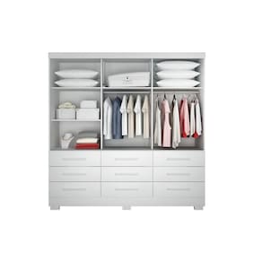 Guarda Roupa Solteiro 3 Portas 9 Gavetas - Buriti-Branco - Móveis Novo Horizonte