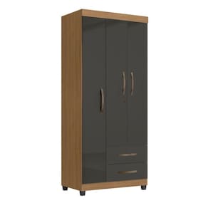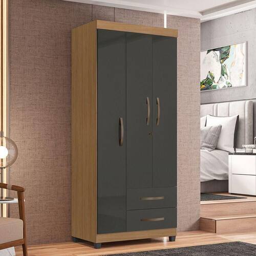 Feito em MDP. Contém 3 portas, 2 gavetas com corrediças telescópicas facilitando a abertura e deslizamento, 1 cabideiro e acompanha chave na porta.