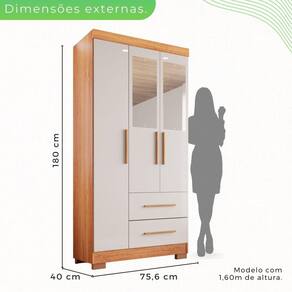 Organize e encontre com mais facilidade suas roupas preferidas! Com o Guarda Roupa Estrela você terá a praticidade de organizar suas coisas do seu jeito. Confeccionado com materiais de qualidade ele é a opção mais acertada para deixar seu dormitório muito mais arrumado. Você não precisa mais procurar, você acaba de encontrar o móvel perfeito para o seu dormitório pensando em como acabar com a desordem e aproveitar todo espaço para guardar roupas, acessórios e o que mais você desejar, ele é a opção perfeita para completar sua casa. Aproveite! Acabamento da Prateleira: Pintura UV Escala de Brilho da Prateleira: Fosco Possui Cabideiros: Sim Acabamento da Gaveta: Pintura UV Possui Organizador de Gaveta: Não Acabamento da Porta: Pintura UV Escala de Brilho da Porta: Semi-Brilho Material do Puxador da Porta: MDF Altura do Espelho: 50 cm Altura dos Pés: 5 Altura Máxima dos Pés: 5.0000 Ambiente Principal: Quarto codigo_ean: 7899931146917 Complexidade da Montagem: Média: pode ser montado por mais de uma pessoa e/ou necessite de maior conhecimento para montagem Cor: Cinamomo/Off-White Cor do Produto: Cinamomo/Off-White Escala de Brilho: Semi-Brilho Espessura do Espelho: 3 mm Formato do Espelho: Retangular Gaveta com Chave: Não Itens Inclusos: 1 Guarda Roupa, Kit Ferragens e Manual de Montagem Largura do Espelho: 17 cm Linha ou Coleção: ESTRELA PREMIUM Manual de Montagem e Instalação: https://product-hub-prd.madeiramadeira.com.br/889204/documents/b0c97f0c-eee6-4206-8011-c05ab9ca88c9peiroestrela3portassalleto.pdf Material da Gaveta: MDP Material da Porta: MDP Material da Prateleira: MDP Material dos Pés: Polipropileno Material Principal: MDP modular: Não Necessita Montagem: Sim Origem do Produto: Nacional Peso: 39,8 kg Peso Máximo por Gaveta: 5 kg Peso Máximo por Prateleira: 3 kg Possui Calceiros: Não Possui Espelho: Sim Possui Pés: 04 Possui Portas: Sim Possui Prateleiras: Sim Produto Montado: Sim Quantidade de Espelho: 02 Espelhos com Tamanhos Iguais Quantidade de Gavetas: 02 Gavetas Recomendações de Uso, Manutenção e Limpeza: Limpar com flanela ou pano macio seco. Não utilizar produtos abrasivos. Não expor o produto diretamente à luz solar e à umidade. Sistema de Montagem: Parafusos, Cavilhas , Minifix, Dobradiças e Puxadores. Tipo de Corrediça da Gaveta: Metálica Simples Tipo de Dobradiça/Corrediça da Porta: Metálica Tipo de Fixação do Espelho: Parafusos Tipo de Gaveta: Externa Tipo de Guarda-Roupa: Solteiro Tipo de Puxador da Gaveta: Externo Tipo de Puxador da Porta: Externo