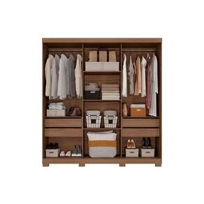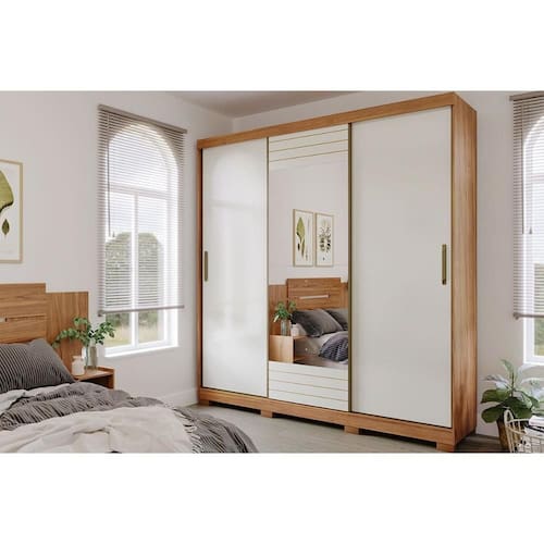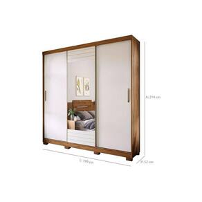 Guarda Roupa Casal 3 Portas de Correr (1 c/ Espelho) e 4 Gavetas Búzios Avelã/Off White - Panan
