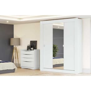 Material dos Cabideiros - Cabideira Metálico Tipo de Porta do Guarda-Roupa - Portas de Correr Material das Portas - Portas em MDP Quantidade de Portas - 3 Portas de Correr Quantidade de Portas com Espelho - 1 Porta com Espelho Tipo de Espelho - Espelho Externo Quantidade de Espelhos - 1 Espelho Quantidade de Prateleiras - 5