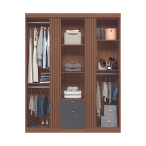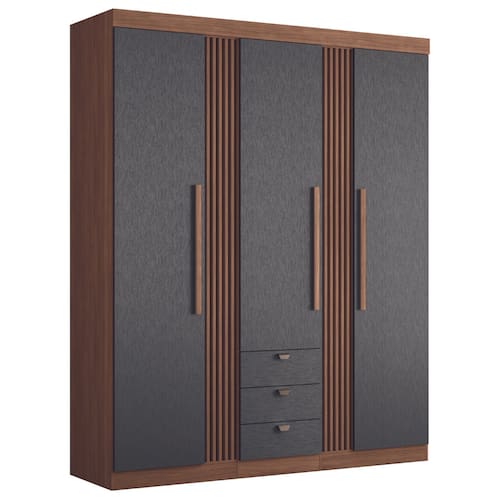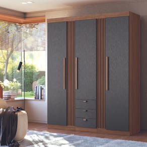 Esse Guarda Roupa é perfeito para você que procura sofisticação e versatilidade, possui detalhes ripados em madeira garantindo a elegância do ambiente.