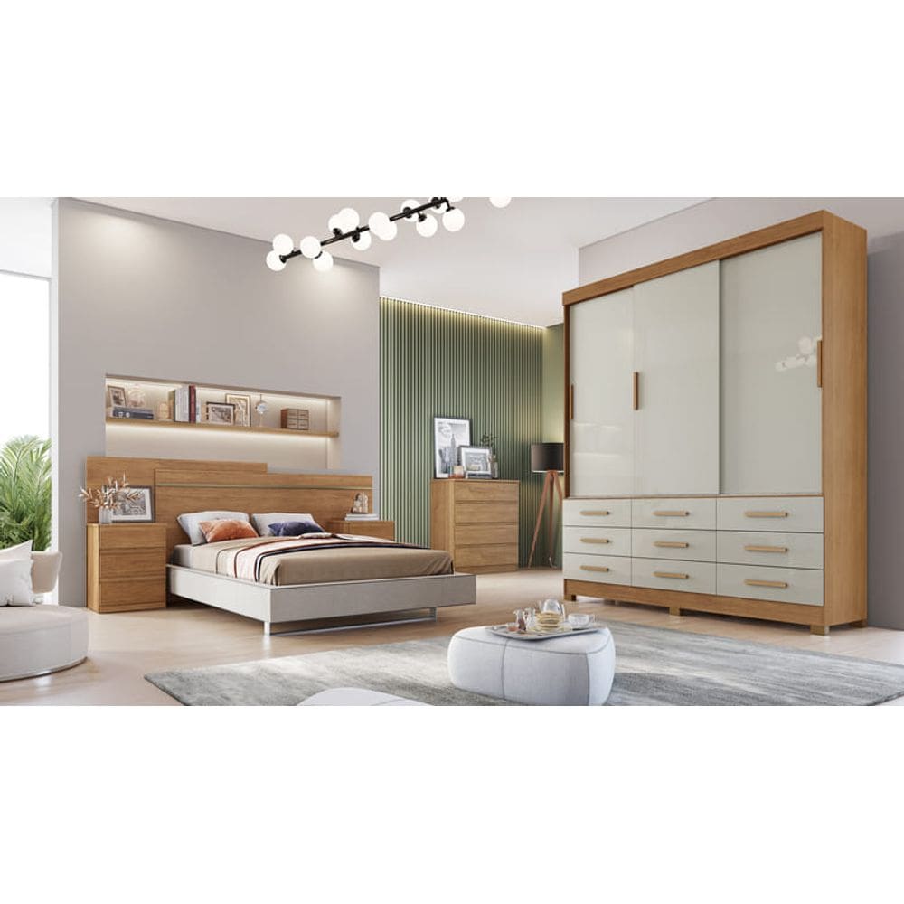 Guarda-Roupa Solteiro com Cama Solteiro 4 Portas 3 Gavetas Advantage Freijó Wood/Off-White