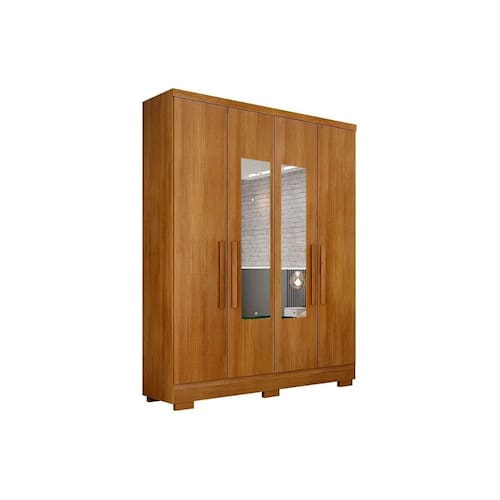Guarda Roupa Solteiro 4 Portas (2 c/ Espelho) e 2 Gavetas c/ Pés Milly/Veneza Freijo Cumaru - Novo Horizonte