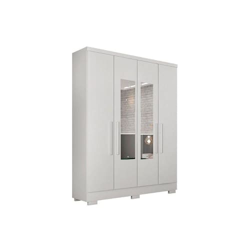 Guarda Roupa Solteiro 4 Portas (2 c/ Espelho) e 2 Gavetas c/ Pés Milly/Veneza Neve - Novo Horizonte