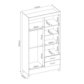 Dimensões do produto montado: Altura: 201cm | Largura: 110cm | Profundidade: 47cm *Você pode consultar as medidas detalhadas na imagem técnica do produto.